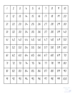 General Math Resources – Hundred Chart