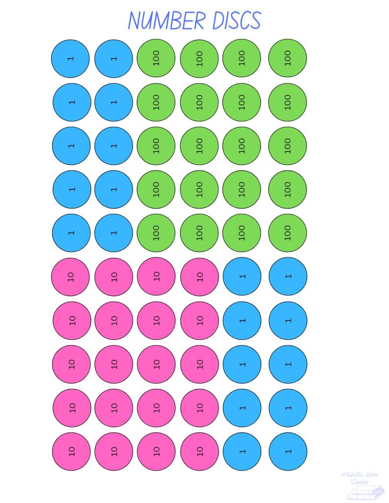 *small discs sized for Place Value Chart