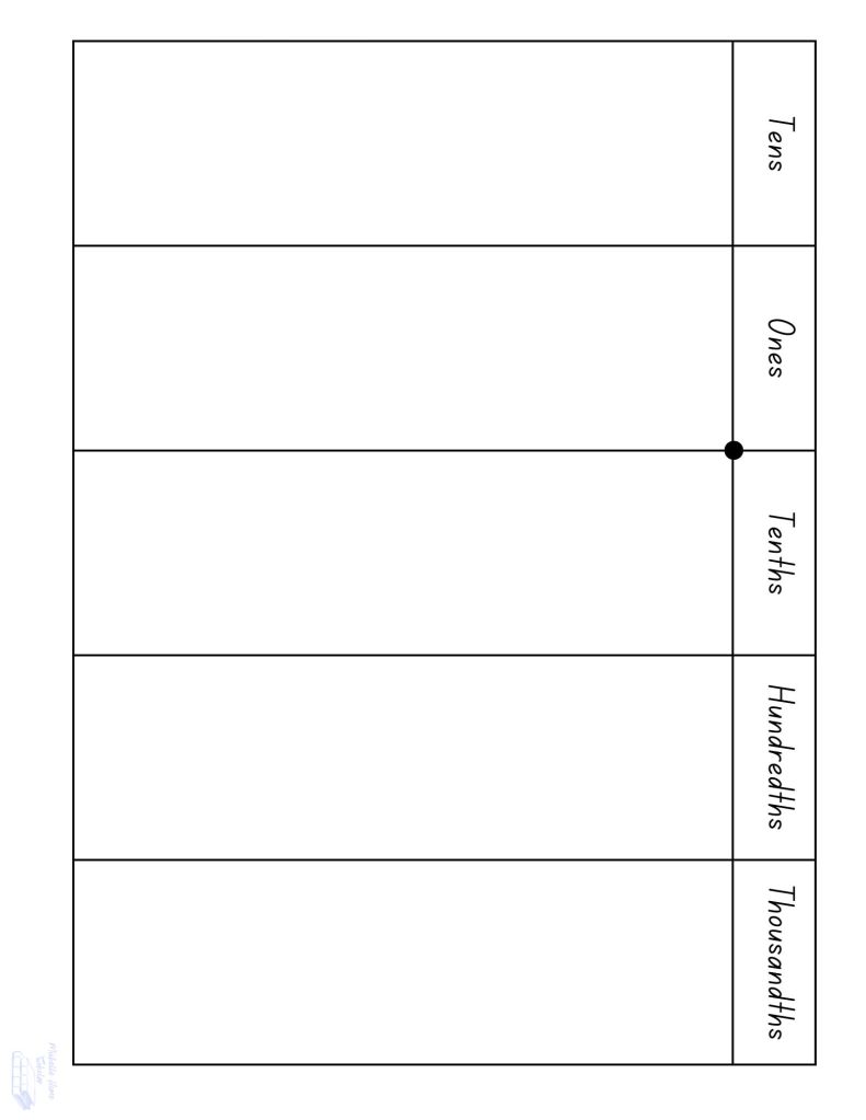 * Charts include Ones to Ten Thousands and Tens to Thousandths