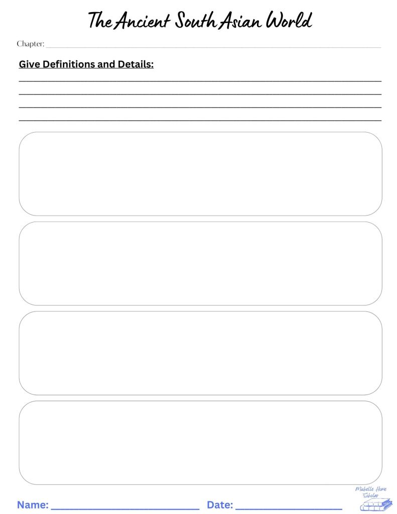 Download The Ancient South Asian World Definitions and Details Worksheets SET.