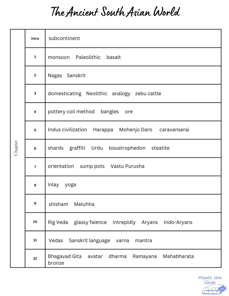 *Master List includes Terms of Interest for each Chapter in The Ancient South Asian World. Blank Master List included.